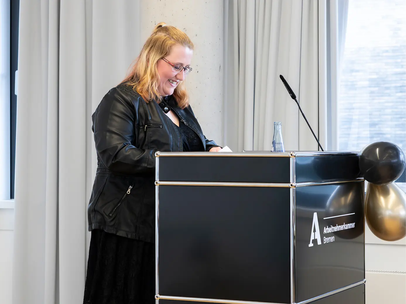 Den Auftakt der Feierlichkeiten bildete die Begrüßung durch Sybille Böschen, stellvertretende Vorsitzende des AWO Kreisverbandes Bremerhaven e.V. In ihrer Rede unterstrich sie, dass die Pflege weit mehr als nur ein Job sei – sie sei eine Berufung, die neben Fachwissen vor allem Einfühlungsvermögen, Geduld und eine große Portion Herz erfordere. Im Anschluss überreichte sie den beiden Kursbesten als Anerkennung ein kleines Geschenk.